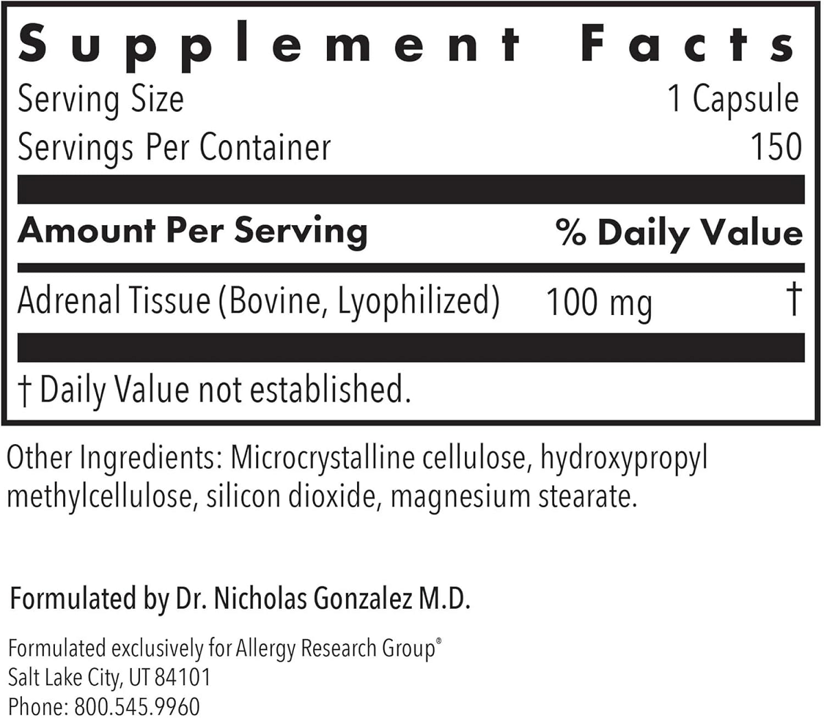 Allergy Research Group, Adrenal Natural Glandular 150 Vegicaps
