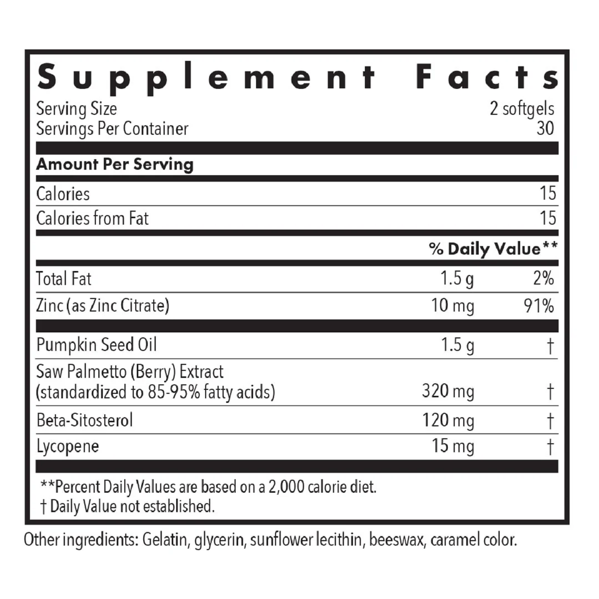 | Saw Palmetto (Berry) Extract (standardized to 85-95% fatty acids) | 320 mg |