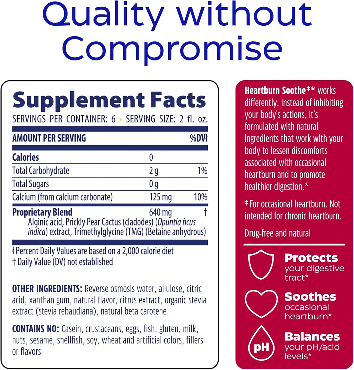 The 3-in-1 formula that soothes occasional heartburn by forming a barrier and buffer for gastric acid, our convenient Heartburn Soothe* Shots protect the digestive tract and help rebuild the stomach lining. * With alginate, prickly pear extract, and buffering extracts, Heartburn Soothe* is the result of a detailed scientific study with the world-renowned Roskamp Institute. *