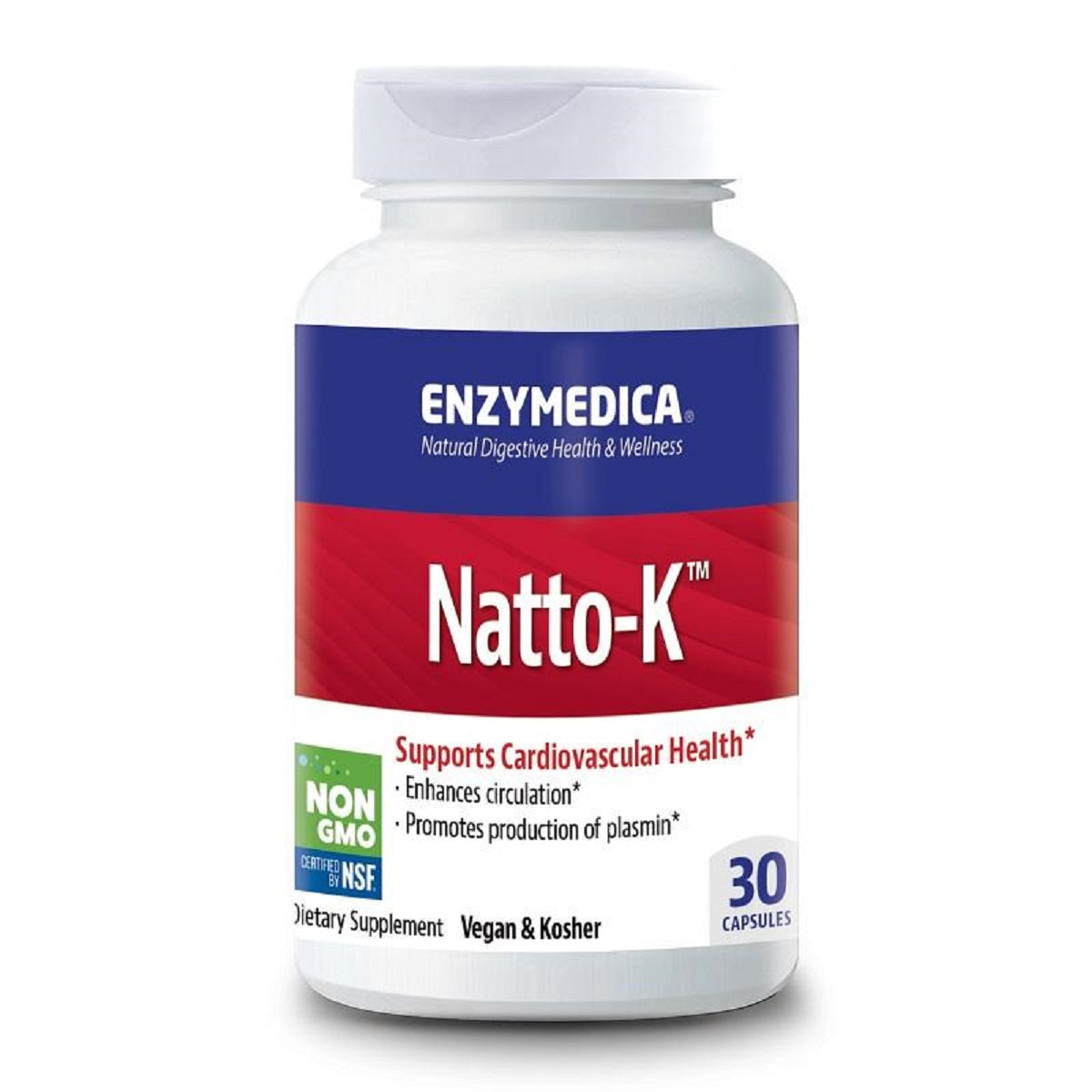 Natto-K contains specialized blends of enzymes including Nattokinase with NSK-SD - the only form of nattokinase that does not contain vitamin K2 to enhance the body's production of plasmin. Plasmin breaks down excess fibrin, which may improve circulation. Natto-K may help maintain already healthy levels of blood clotting factors within a healthy range.