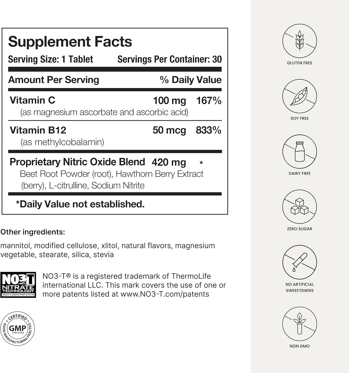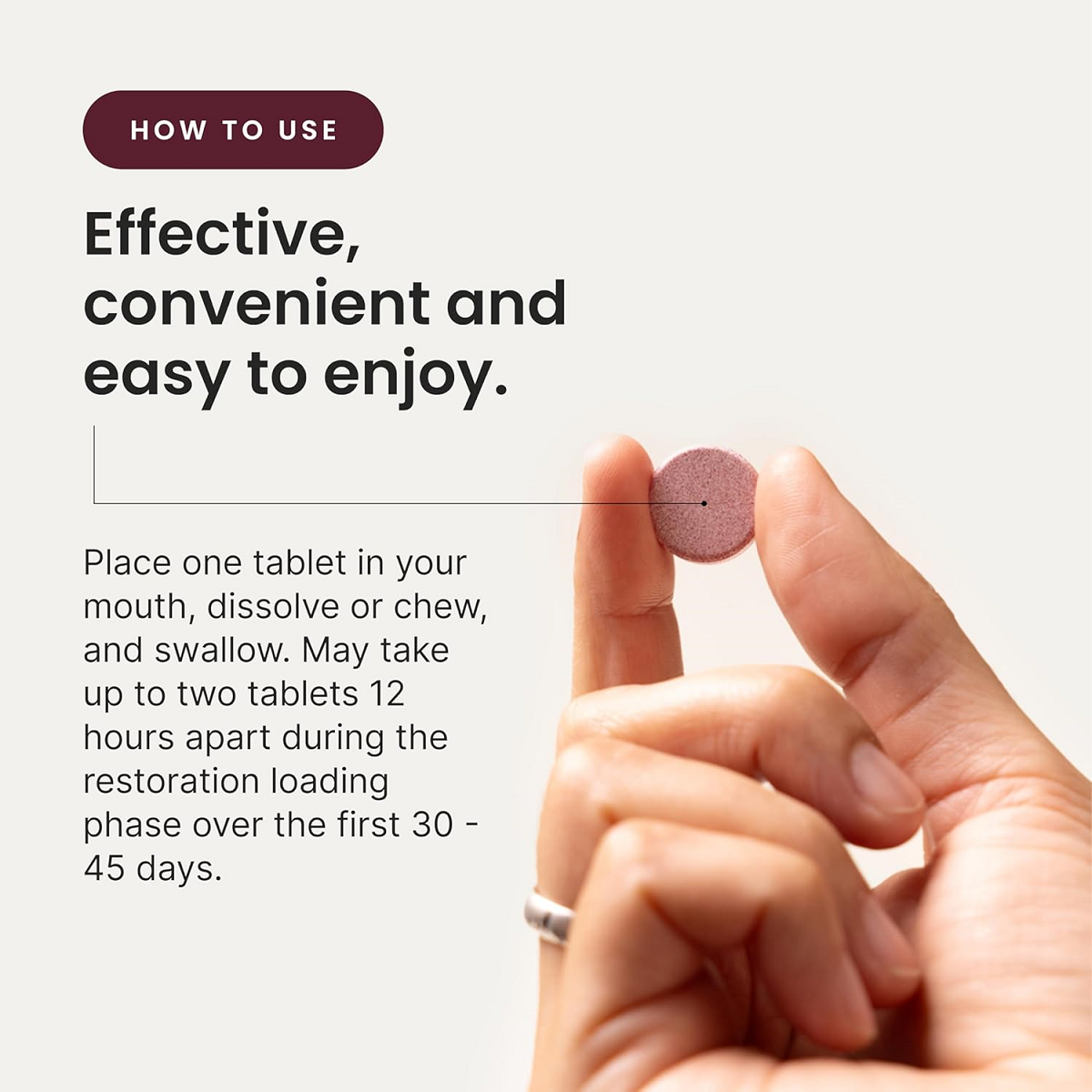 We recommend an initial Nitric Oxide restoration loading period. During the first 30 to 45 days, take one tablet two times a day, or every 12 hours. This could be one in the morning and one in the evening.