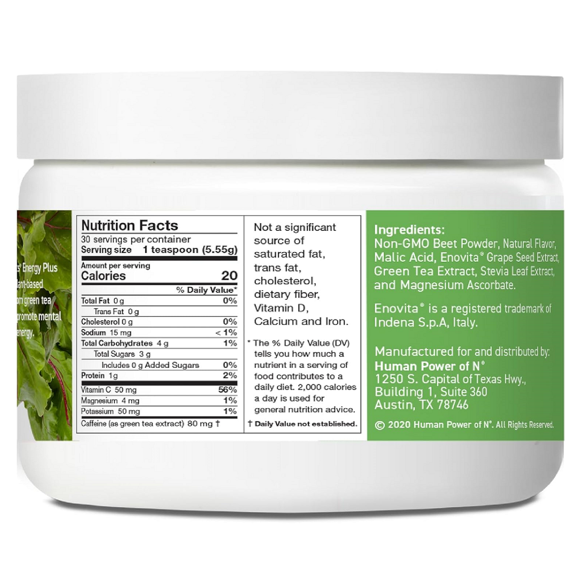SuperBeets® Energy Plus is vegan, gluten-free, soy-free, dairy-free, caffeine-free, non-GMO, and made without artificial colors or sweeteners. It is third-party tested for purity, potency, and safety.