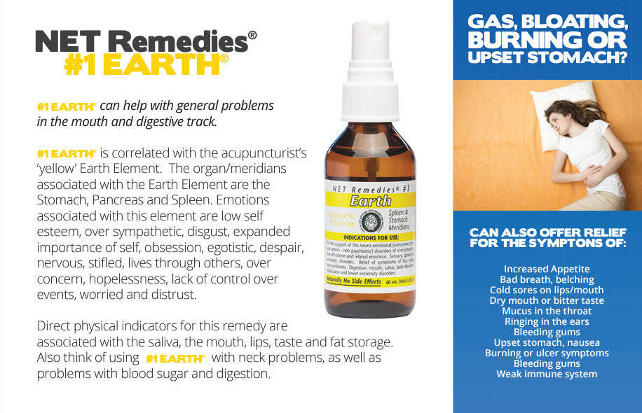 - Also think of using #1 Earth with neck problems, as well as problems with blood sugar and digestion.