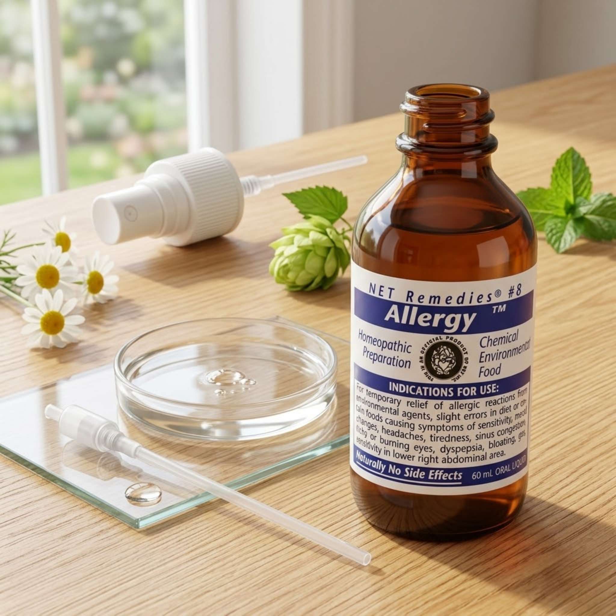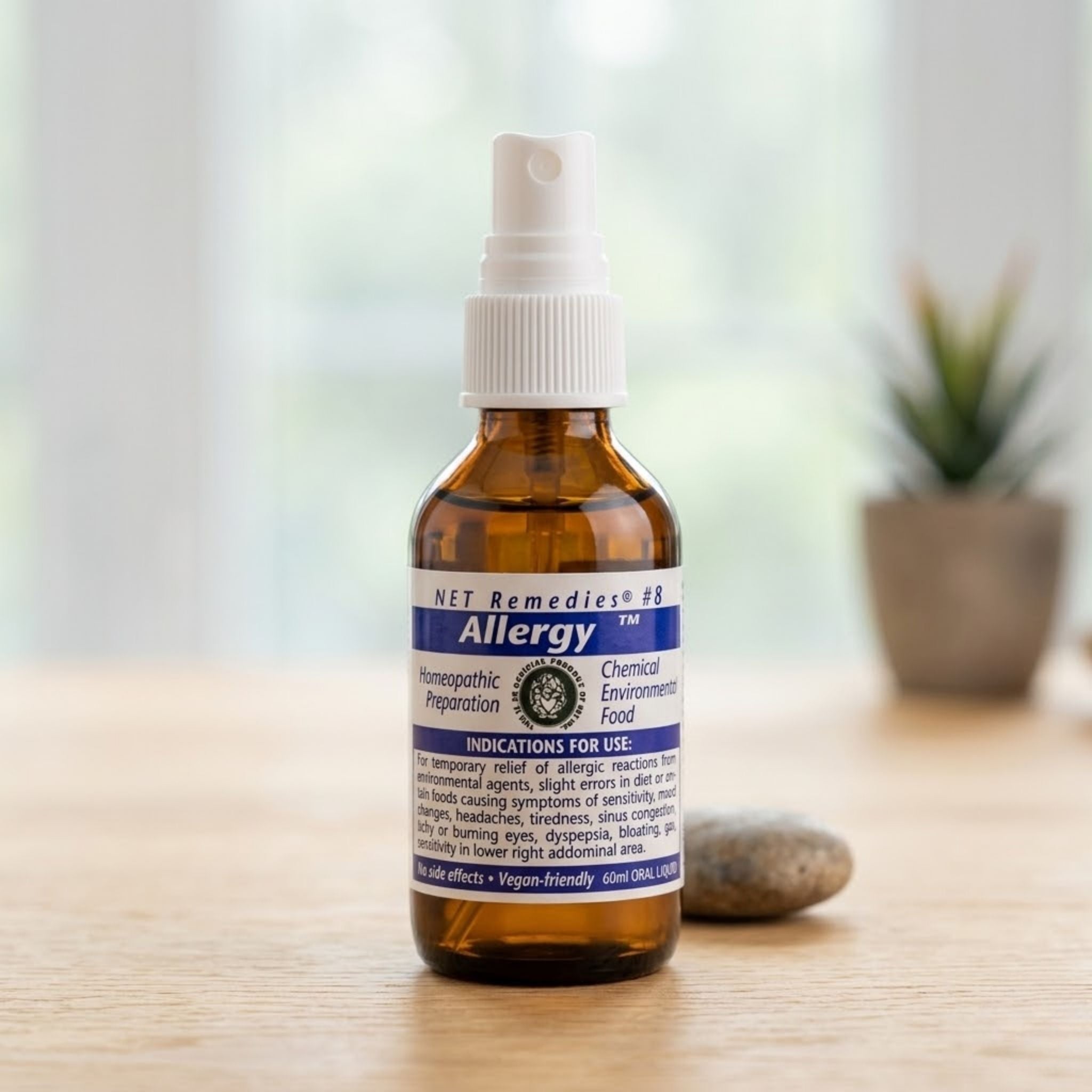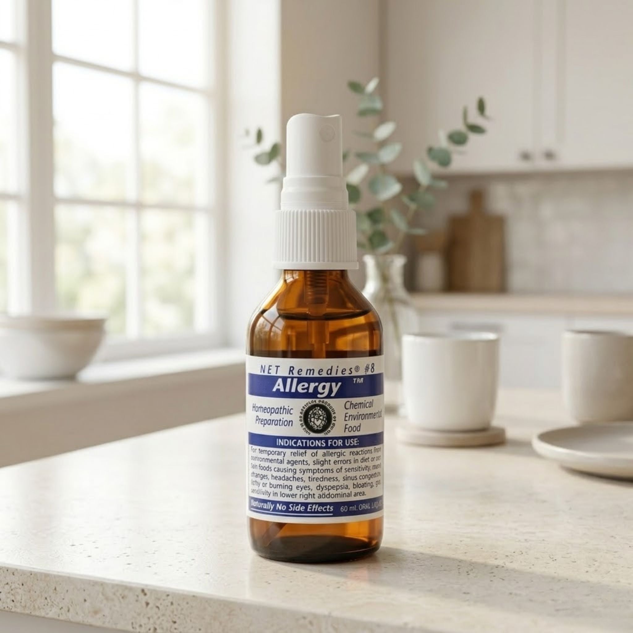 Symptoms can include frequent colds, bloating, emotional instability, migraine headaches, and persistent fatigue. NET Remedies #8 Allergy 60 ml Oral Liquid is a potent blend of herbal ingredients designed to alleviate the indicators of an allergic reaction to food or environmental substances, such as pollen and airborne pollutants. Suitable for vegans and vegetarians.