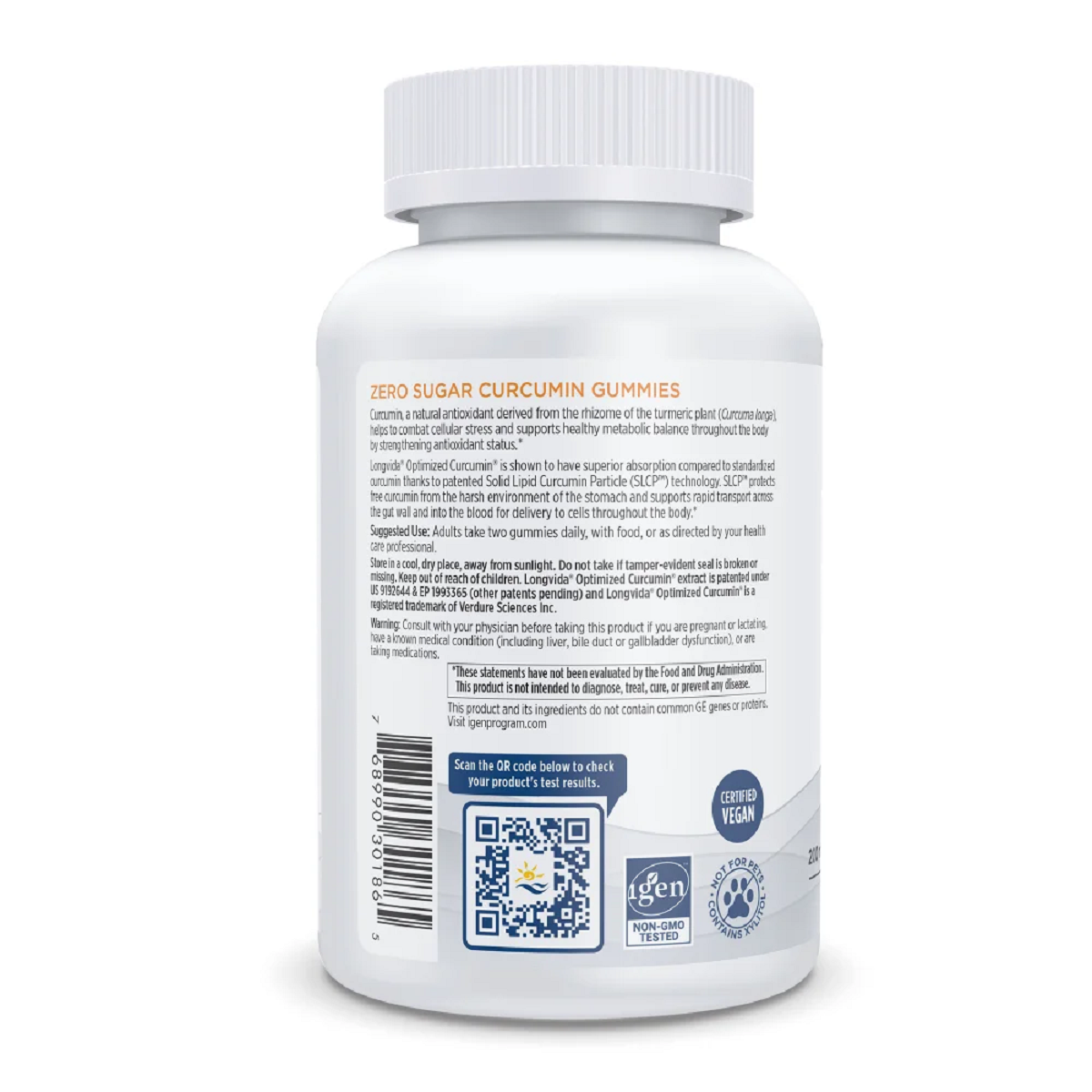 Curcumin is a natural antioxidant derived from the root of the turmeric plant (Curcuma longa) that provides unique antioxidant support.* Each 2-gummy serving contains 200 mg Longvida® Optimized Curcumin, which is 285 times better absorbed‡ than other forms of curcumin thanks to patented Solid Lipid Curcumin Particle (SLCP™) technology. Sweetened with xylitol, vegetarian Curcumin Gummies have a great, natural mango taste with zero sugar. Delicious mango-flavored Curcumin Gummies help promote a healthy inflammatory response throughout the body.*