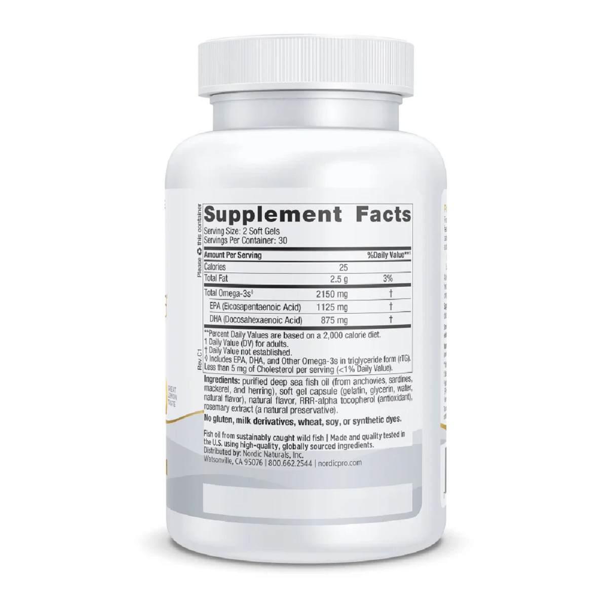 Purified deep sea fish oil (from anchovies and sardines), soft gel capsule (gelatin, water, glycerin, natural lemon flavor), natural lemon flavor, d-alpha tocopherol, rosemary extract (a natural preservative).