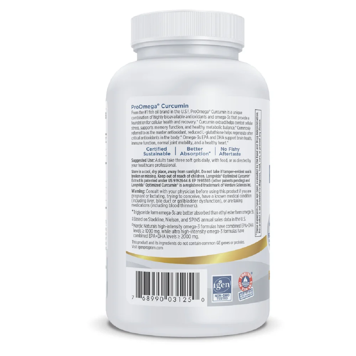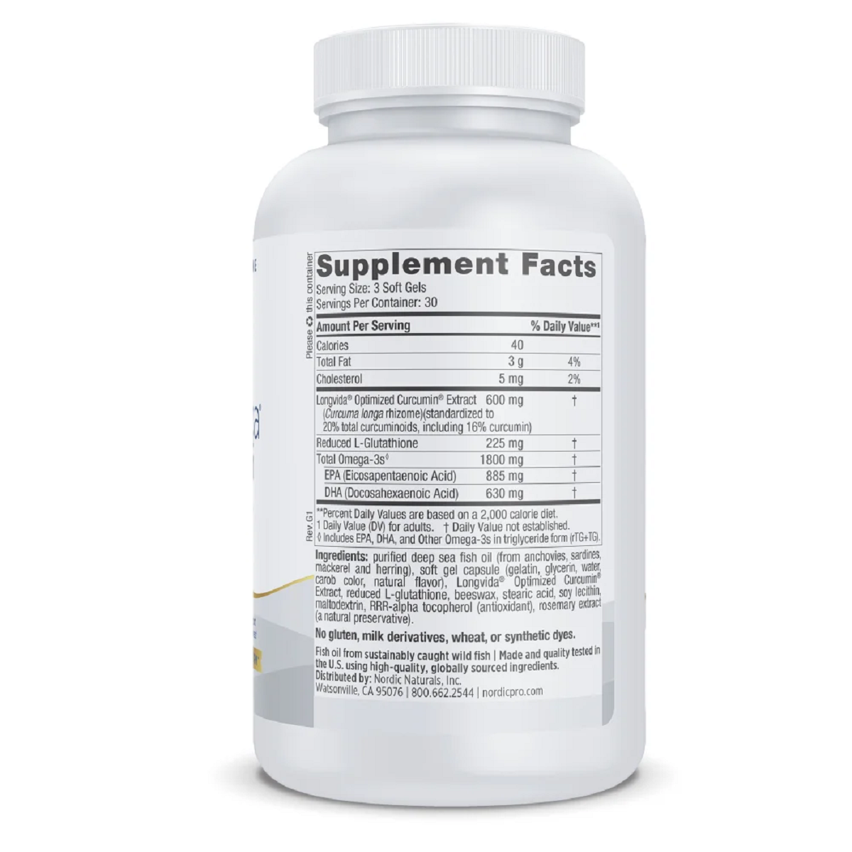ProOmega® Curcumin combines ultra-concentrated EPA and DHA with Longvida® Optimized Curcumin and reduced L-glutathione to modulate the risk of systemic metabolic stress by addressing oxidative stress.*