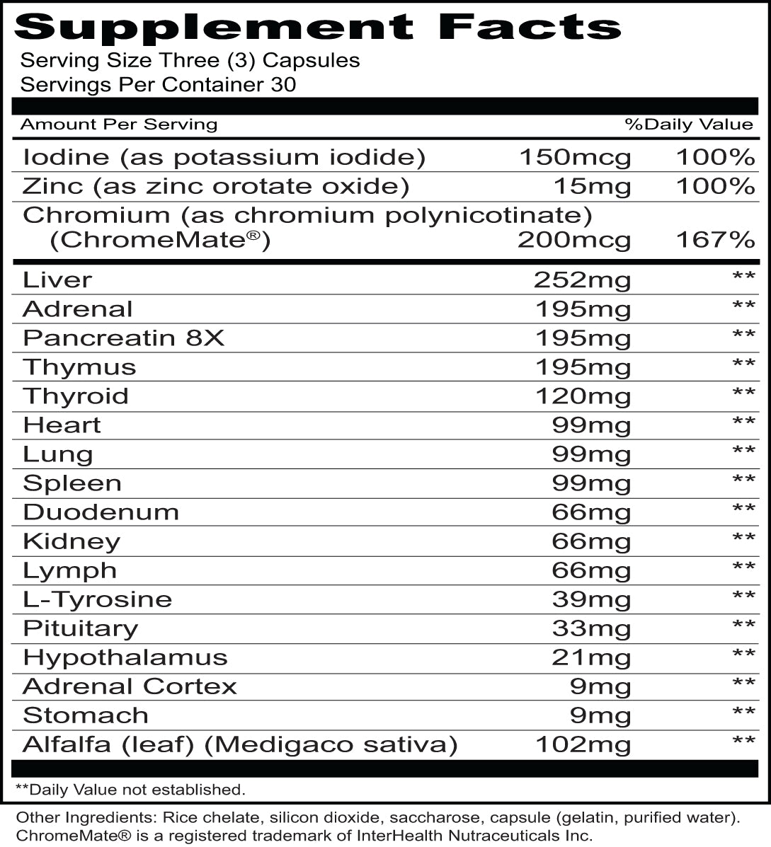If you are pregnant or breastfeeding, consult your physician before using this product. This product contains naturally occurring adrenal and thyroid hormones that may cause reactions with other medications. If heart palpitations occur, discontinue use. Do not exceed four (4) capsules in a 24-hour period.