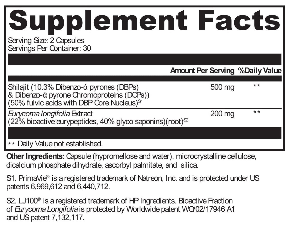 Vitali-T features two safe, clinically tested, standardized, and patented ingredients designed to support vitality and general physical and mental well-being in men and women. Numerous studies have demonstrated that PrimaVie® shilajit and LJ100® Eurycoma longifolia support healthy androgen biosynthesis, which includes modulating the influence of sex hormone-binding globulin.†