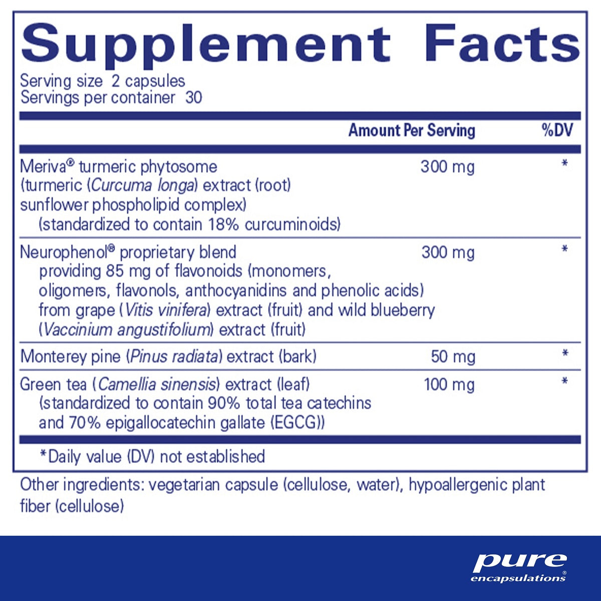 Providing 85mg of flavonoids (monomers‚ oligomers‚ flavonols‚ anthocyanidins and phenolic acids) from grape (Vitis vinifera) extract (fruit) and wild blueberry (vaccinium angustifolium) extract (fruit).