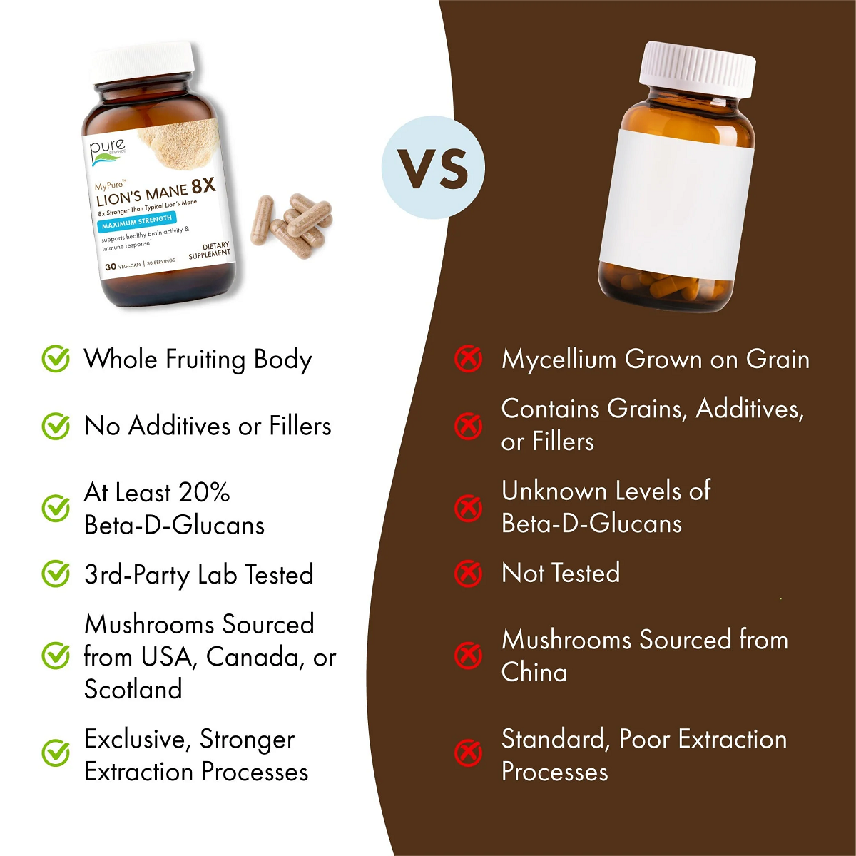 By choosing MyPure™ Lion’s Mane 8X, you are not only investing in better brain health but also in higher quality and cleaner sourcing. Unlock your untapped mental clarity and open the door to new possibilities with MyPure™ Lion’s Mane 8X!*