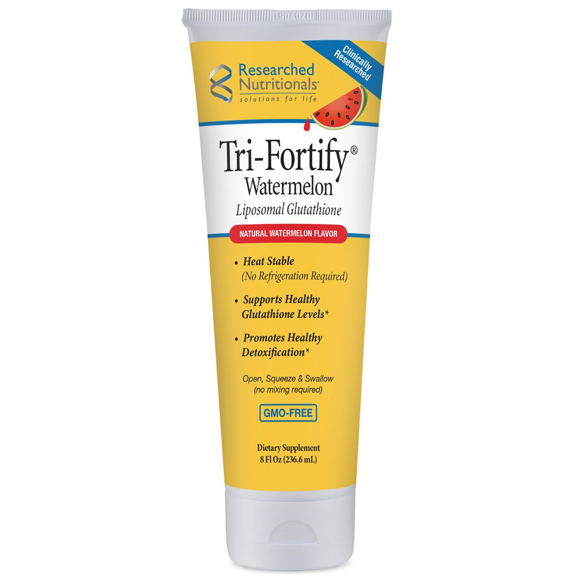 Glutathione is an antioxidant produced in the cells of the skin and body. Deficiency in this cluster of amino acids can result from a variety of factors such as stress, environmental pollutants, inadequate nutrition, and aging. Researched Nutritionals Tri-Fortify Watermelon Tube 8 fl. oz. the gel is a daily dietary supplement that works to: bolster the action of antioxidants in the body, promote the natural detoxification process, and support the normal function of the immune system.